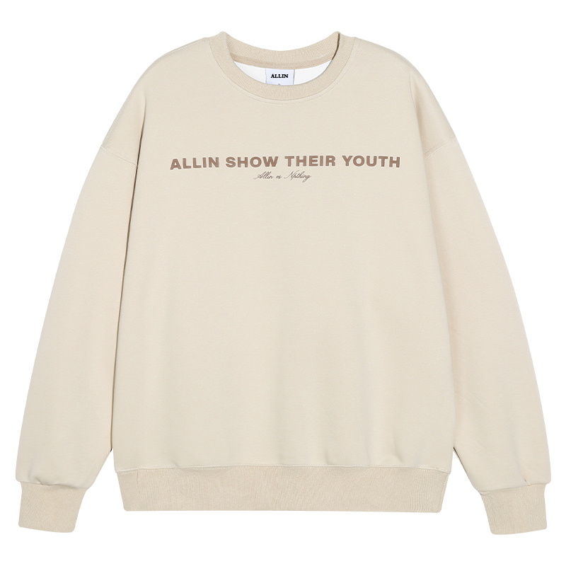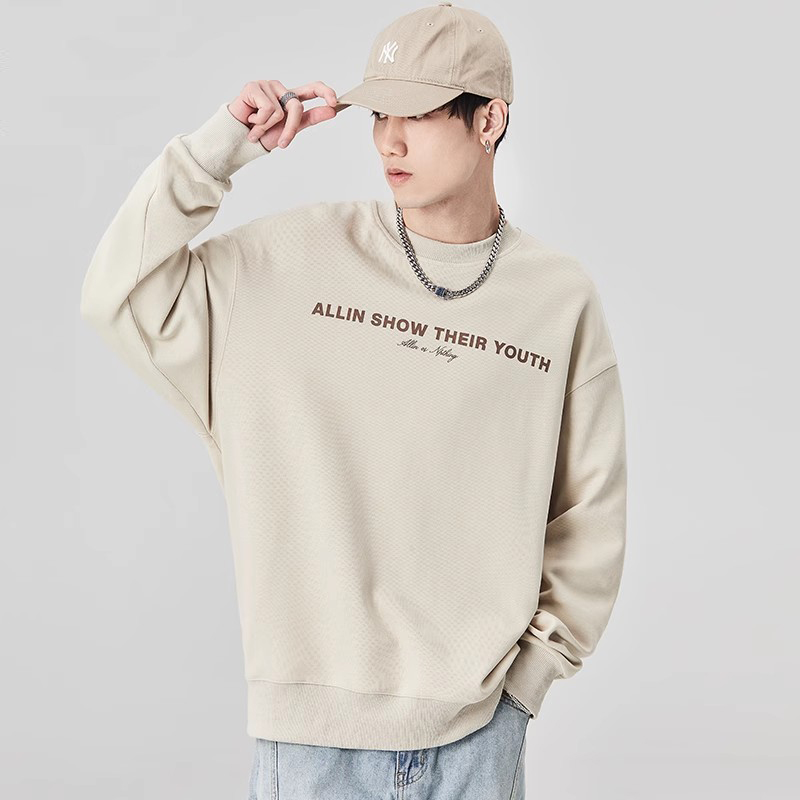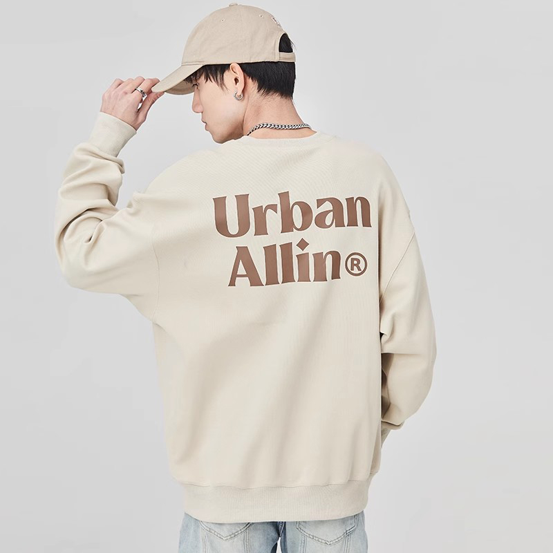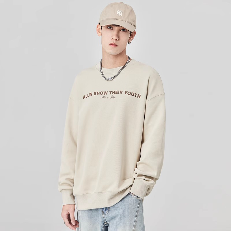 上衣 潮牌字母印花套头宽松百搭情侣长袖 ALLIN 无帽卫衣男春秋美式