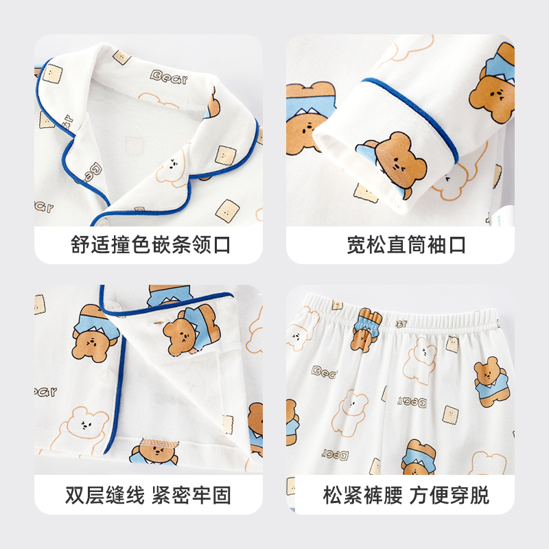 套装 婧麒立领儿童睡衣春秋款 秋季 宝宝家居服男童女童新款 纯棉长袖