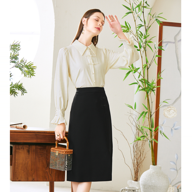 新款 betu百图新中式 衬衣2024年秋装 国风设计感气质长袖 盘扣衬衫