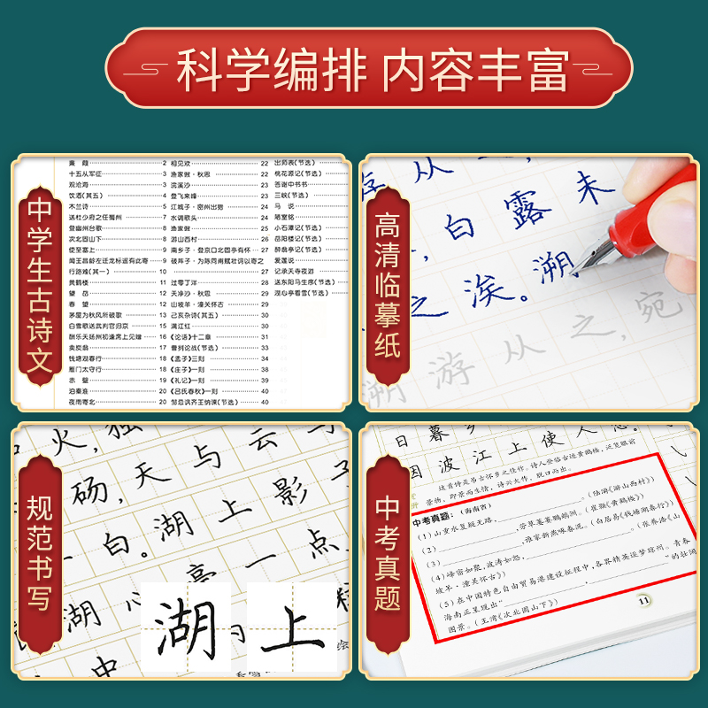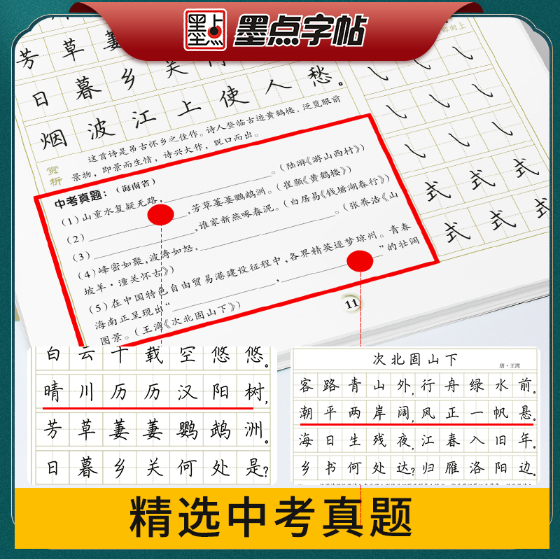 墨点字帖 中考语文古诗文荆霄鹏正楷字帖初中生练字七年级八年级初中古诗词阅读理解专项训练练习册
