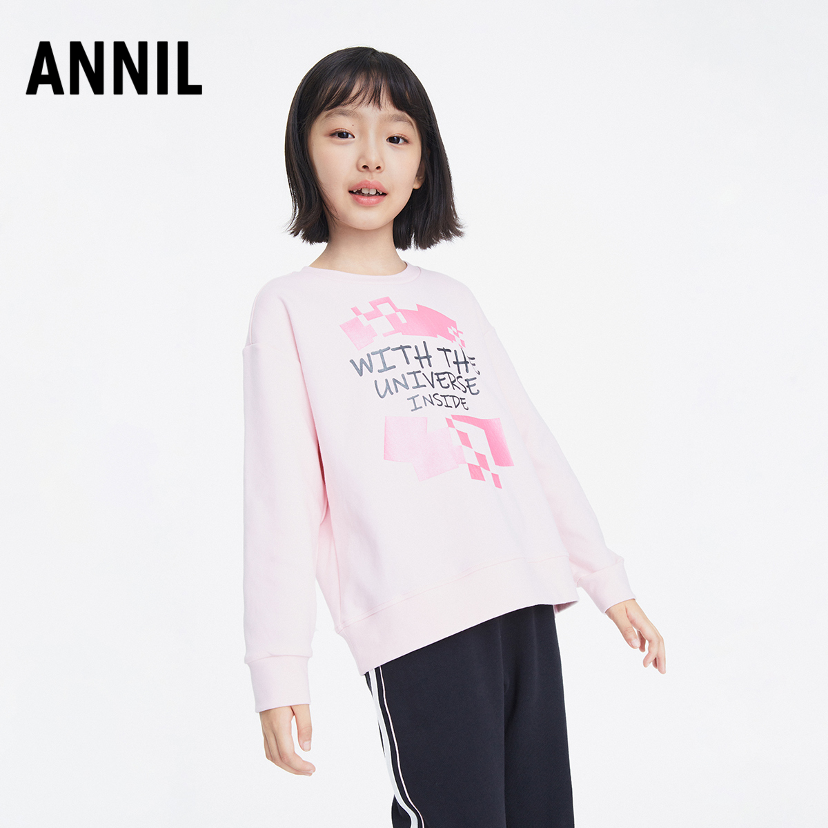 安奈儿男女童卫衣2023春新款 圆领大童打底上衣棉 洋气时髦儿童长袖