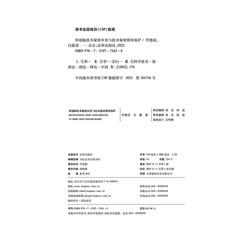 李德成 科创板技术秘密审查与技术秘密刑事保护 白露 金诚同达30周年文集 社9787519771638 正版 法律出版 2022新书