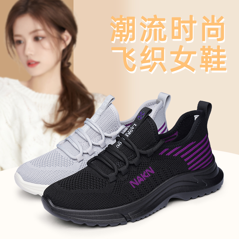 秋季 妈妈布鞋 2025新款 女透气飞织网面鞋 休闲运动跑步鞋 老人头女鞋