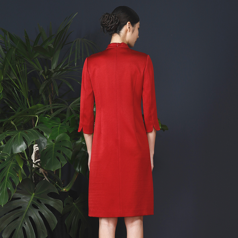 莱茵福莱尔绵羊毛蝴蝶结圆领连衣裙深灰宽松气质典雅设计感25冬新