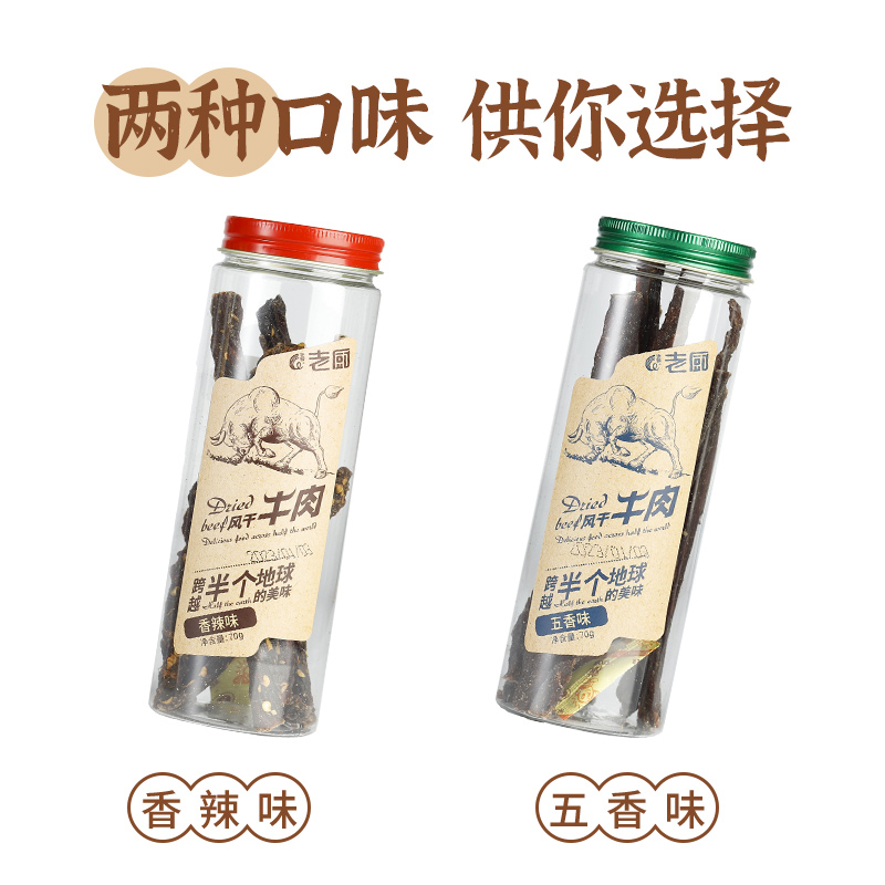 老厨风干牛肉干超干手撕正宗南美进口特产香辣五香味小吃零食罐装