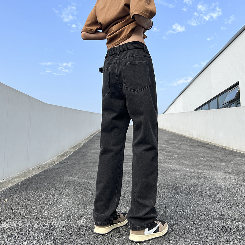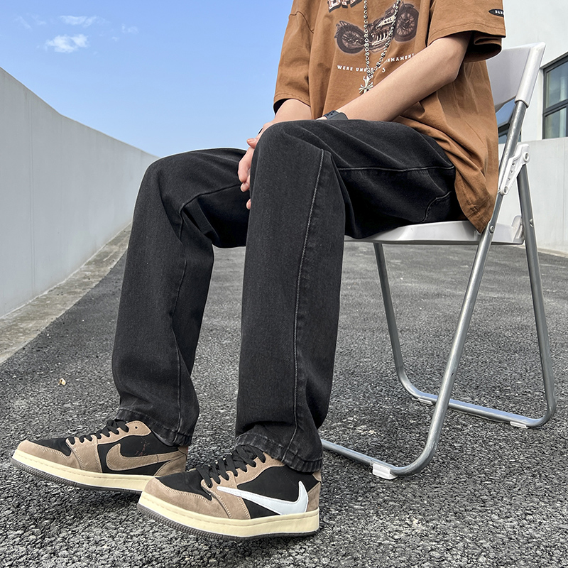 美式 修身 直筒裤 2025秋季 vibe窄版 男潮牌宽松长裤 子男款 黑色牛仔裤