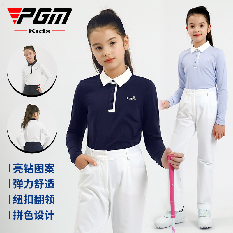 速干童装 PGM儿童高尔夫服装 T恤女生青少年套装 女童长袖 衣服 秋季