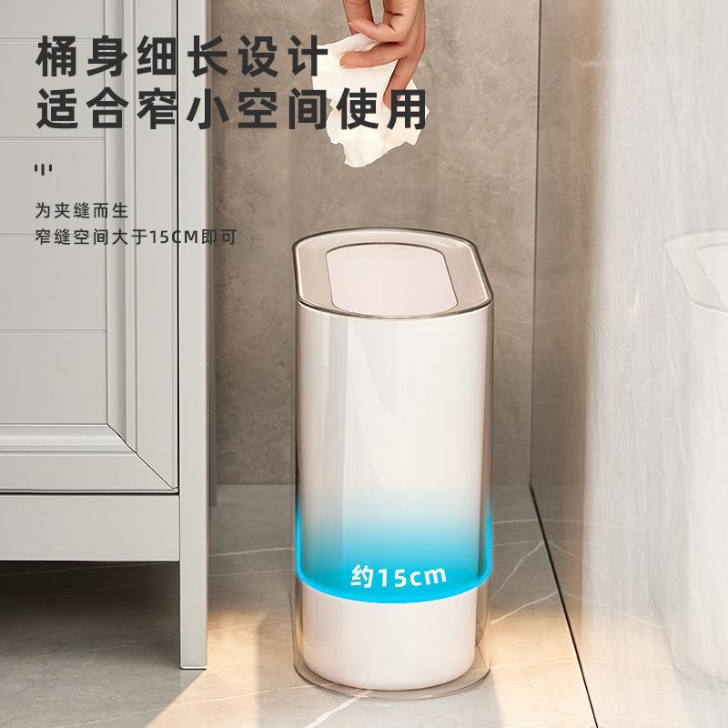 馨苑窄形轻奢透明垃圾桶 夹缝纸篓 ins卫生间客厅加厚双层透明罩式