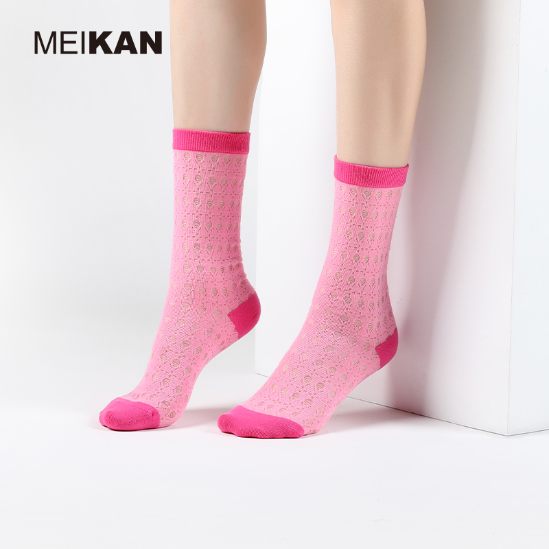 MEIKAN袜子女春夏薄款 堆堆袜镂空网眼袜 外穿潮中筒袜白色网红款