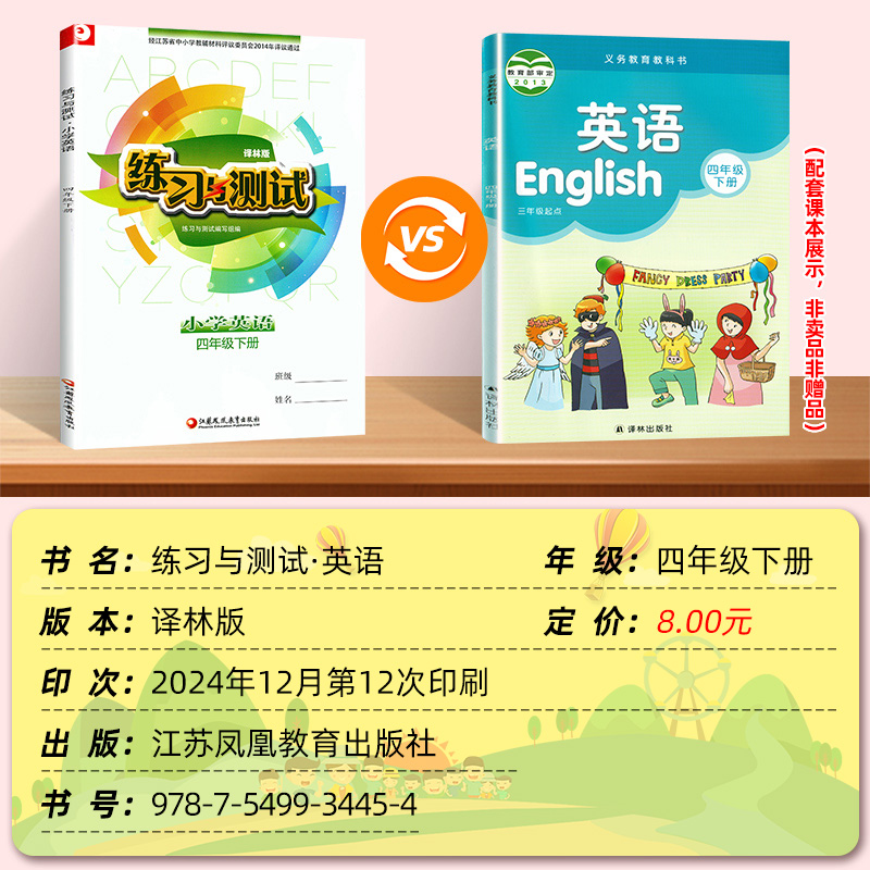 使用教辅江苏凤凰教育出版 2025春新版 同步练习册含参考答案学校推荐 江苏小学课本译林版 社 练习与测试小学英语四年级下册4下苏教版