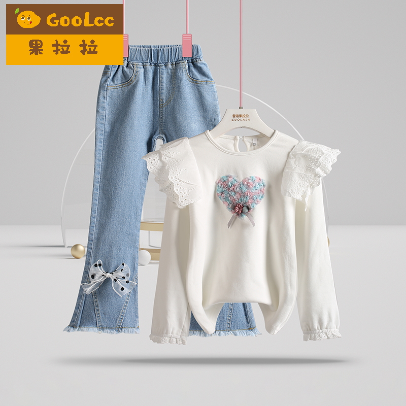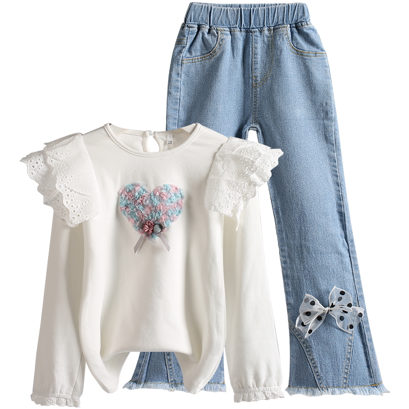 牛仔裤 女童公主套装 小女孩宝宝白色小衬衫 2025韩版 两件套 春秋新款