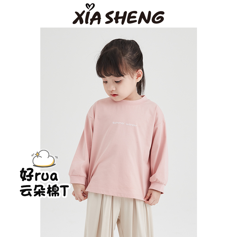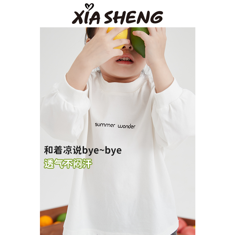 新款 男女童宽松百搭上衣儿童休闲打底宝宝春装 字母印花T恤 夏生