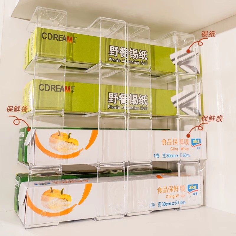放保鲜袋收纳神器保鲜膜收纳盒厨房抽屉式 置物架分格橱柜 收纳架装
