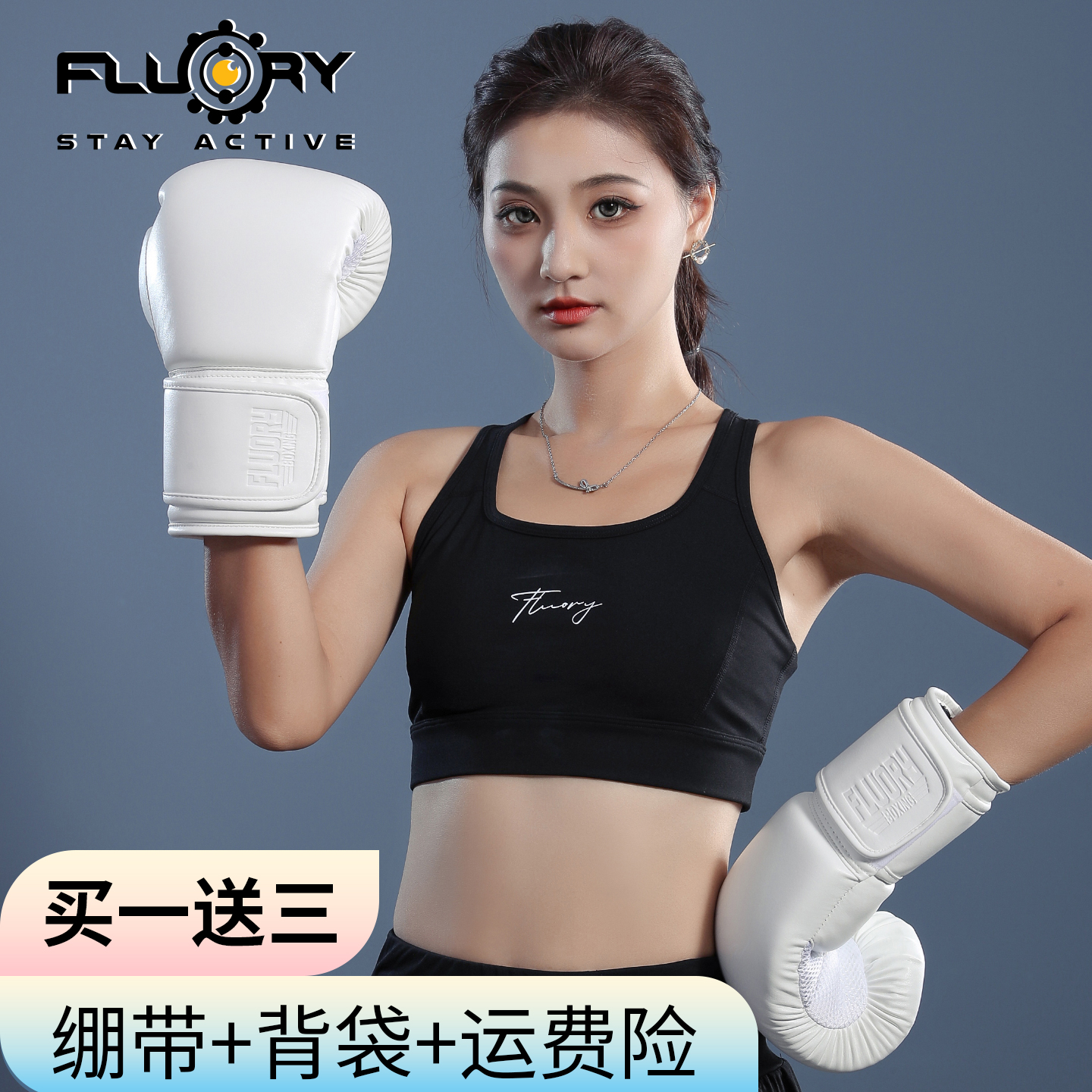 fluory拳击手套女生真皮拳套泰拳专业搏击训练成人男女粉色拳套女