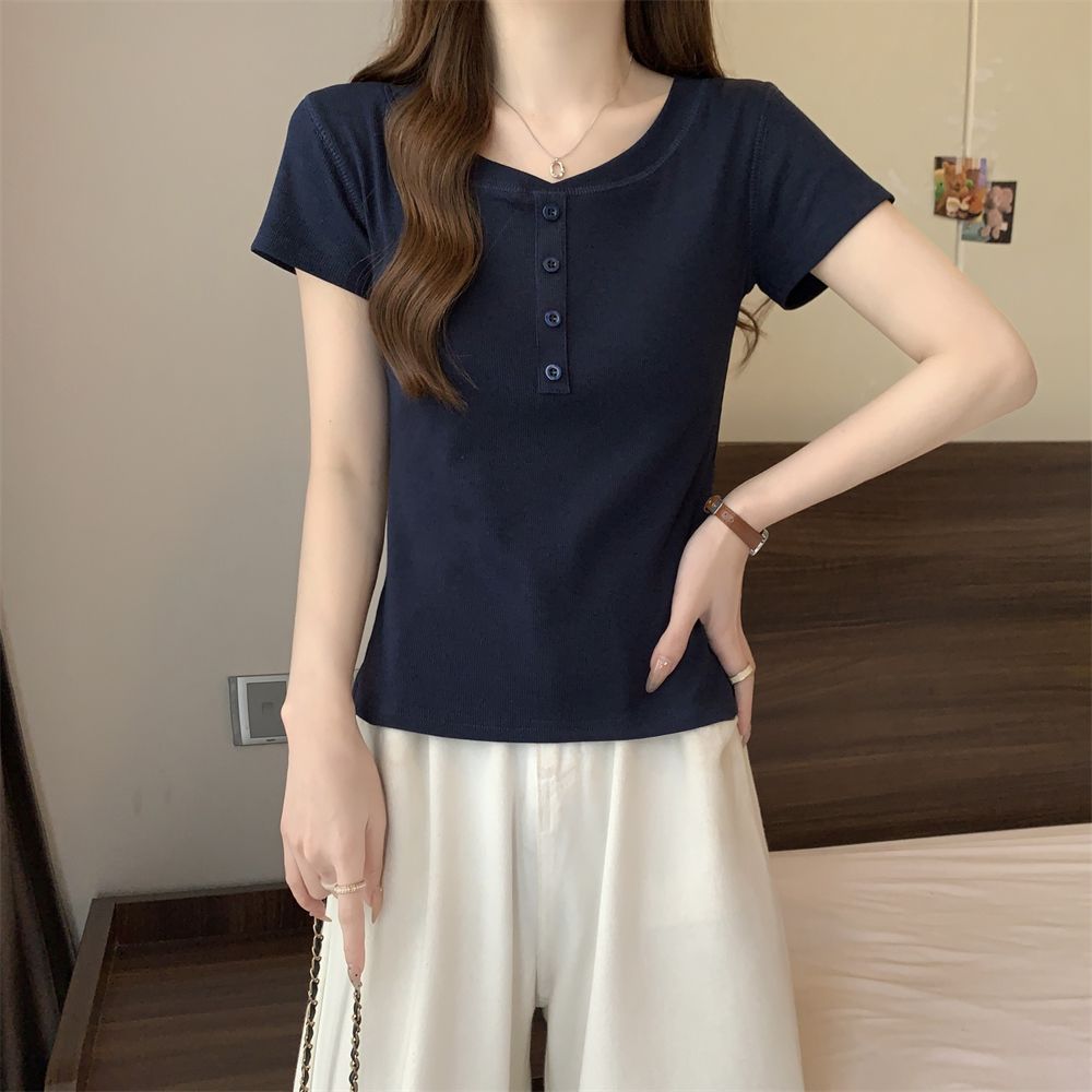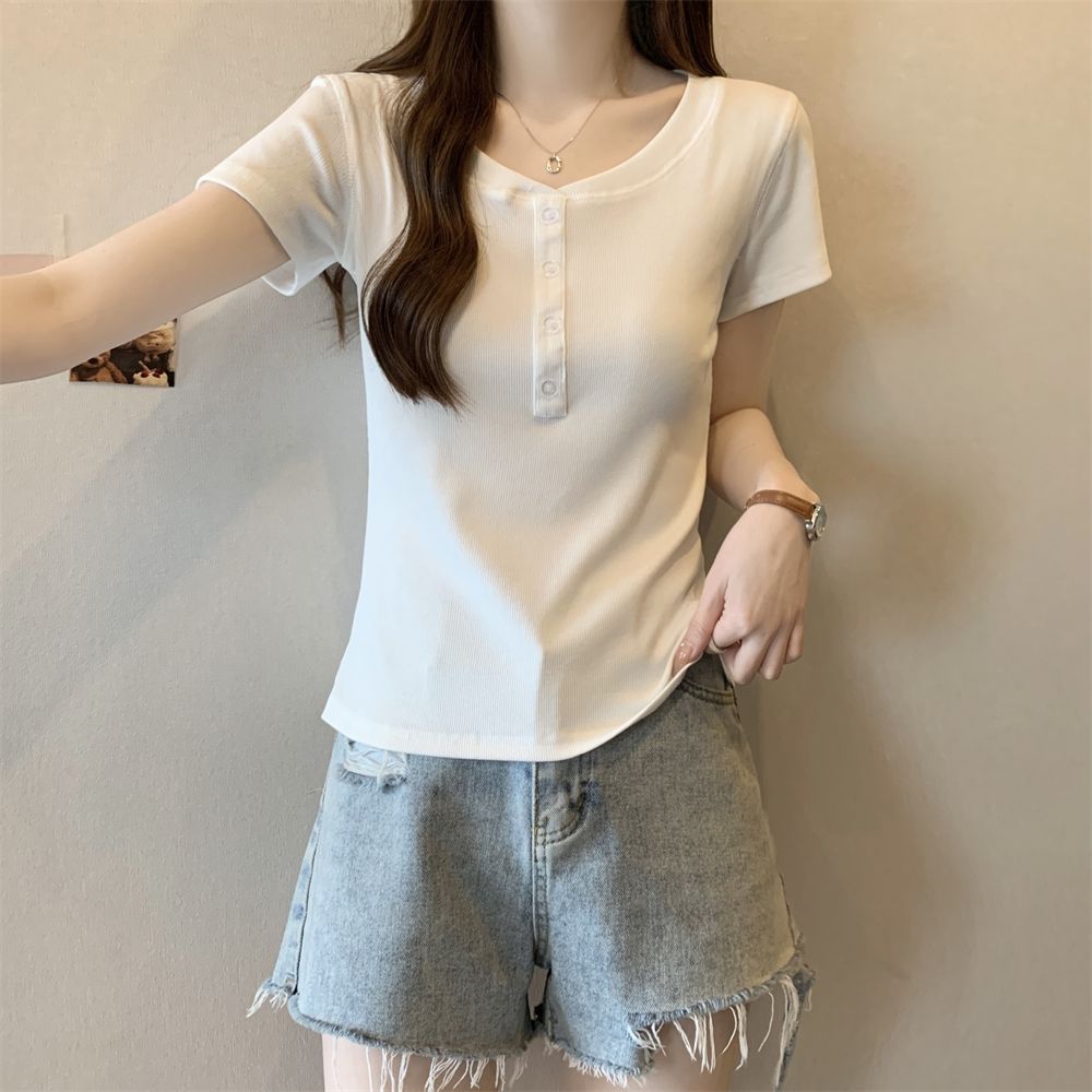 新款 T恤女2025夏季 韩版 修身 上衣 小个子短款 正肩chic甜辣半袖 短袖