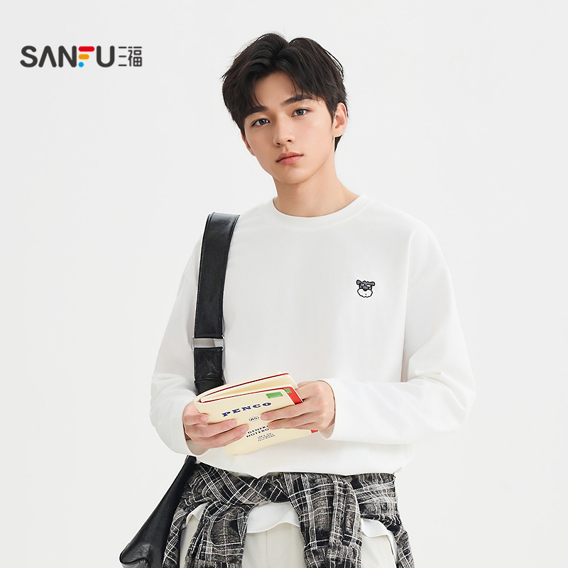 506192 t恤男小狗绣花休闲宽松圆领打底衫 三福2025秋冬新款 长袖