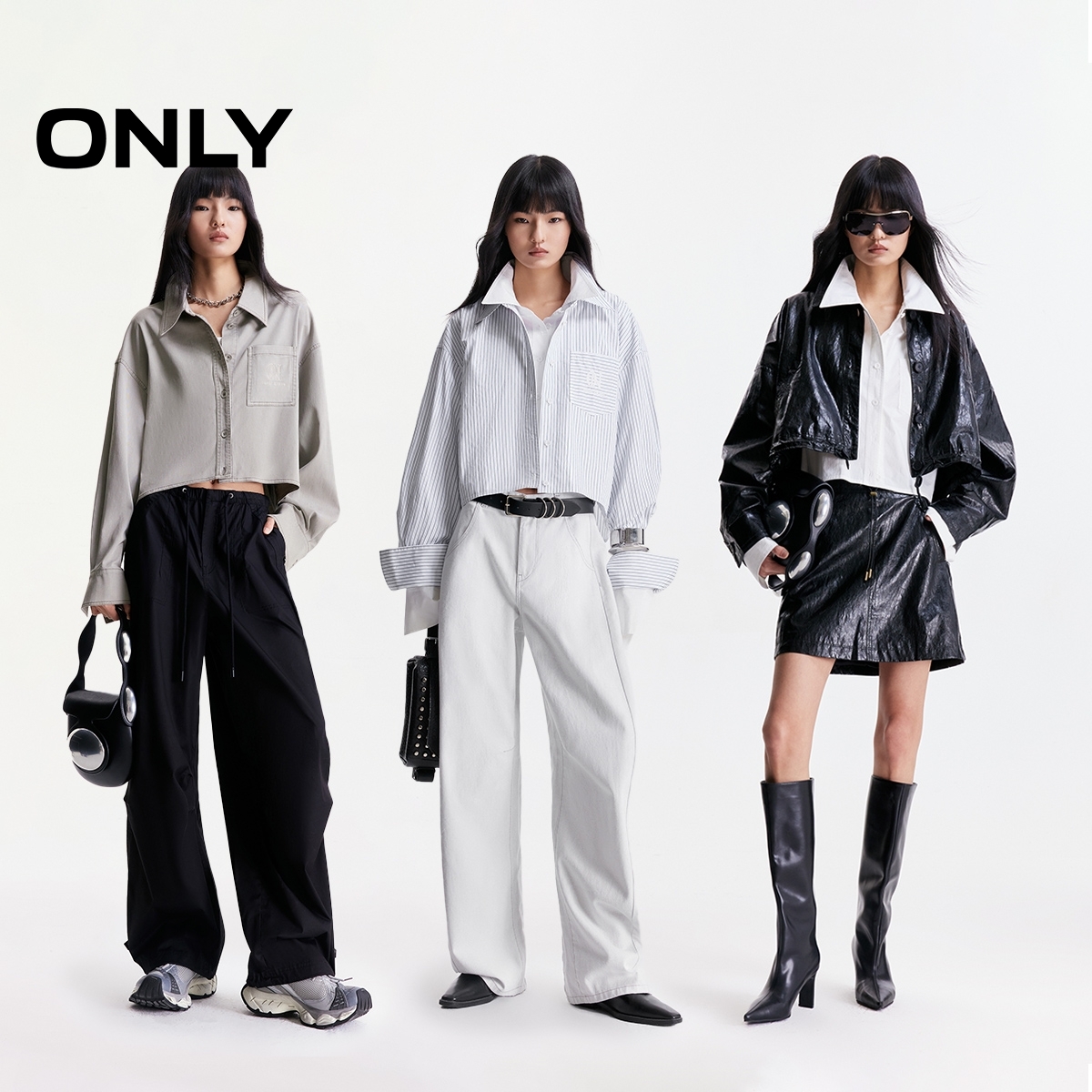 衬衫 ONLY2025秋季 显瘦长袖 酷感利落有型翻领落肩纽扣短款 女 新款