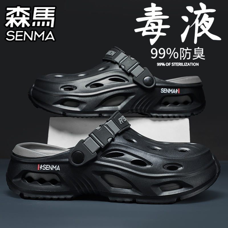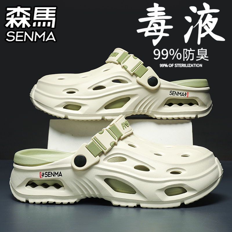 防滑防臭户外海边沙滩凉鞋 外穿运动透气包头拖鞋 男夏季 森马洞洞鞋