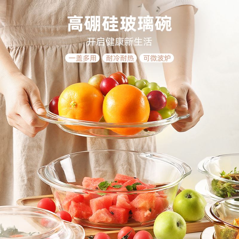 玻璃碗耐高温带盖家用微波炉专用加热器皿光波炉汤碗泡面碗蒸蛋碗