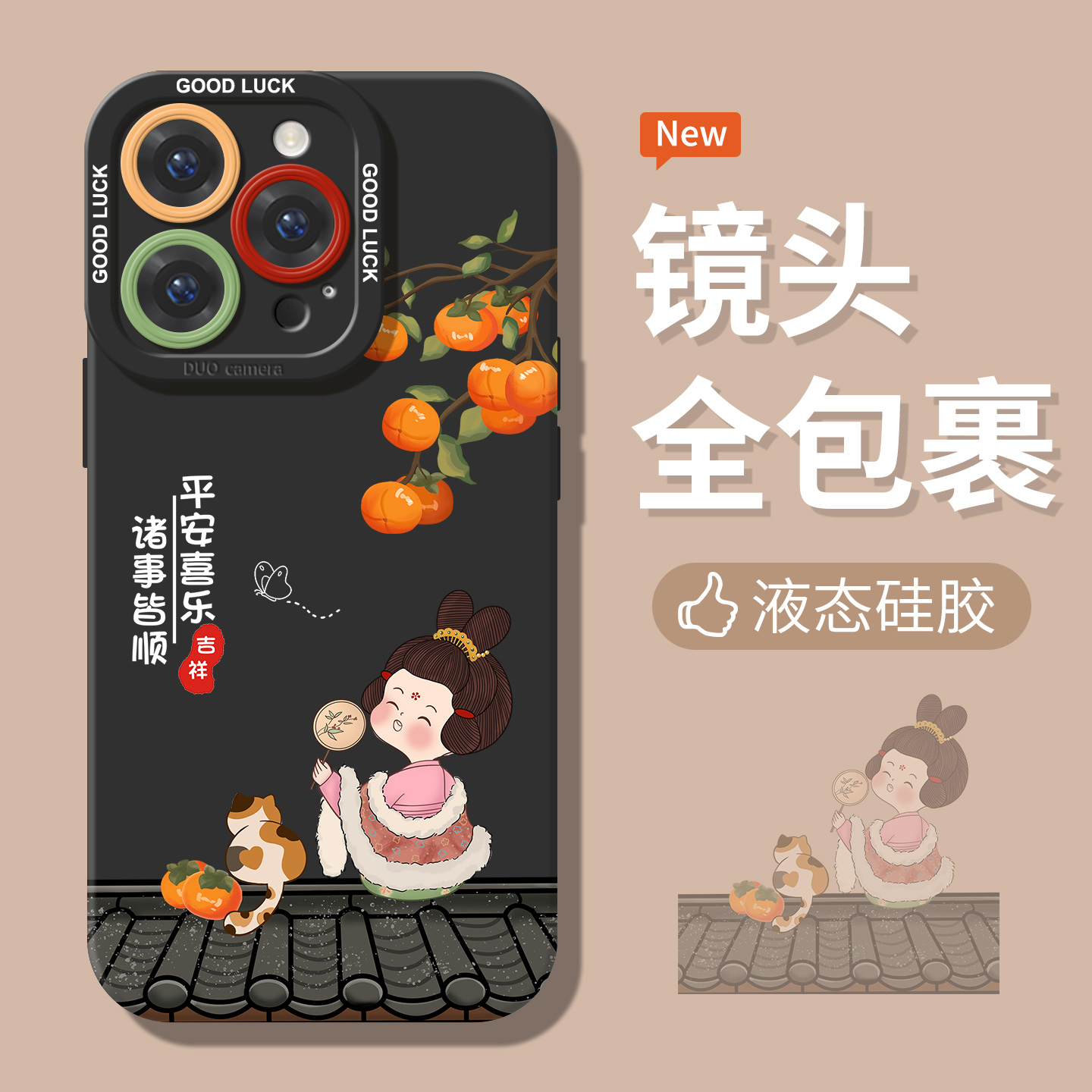 唐美人适用苹果17手机壳16全包镜头15液态硅胶14中国风13少女风12带挂绳11小众高级感xr超火x平安xs防摔软壳