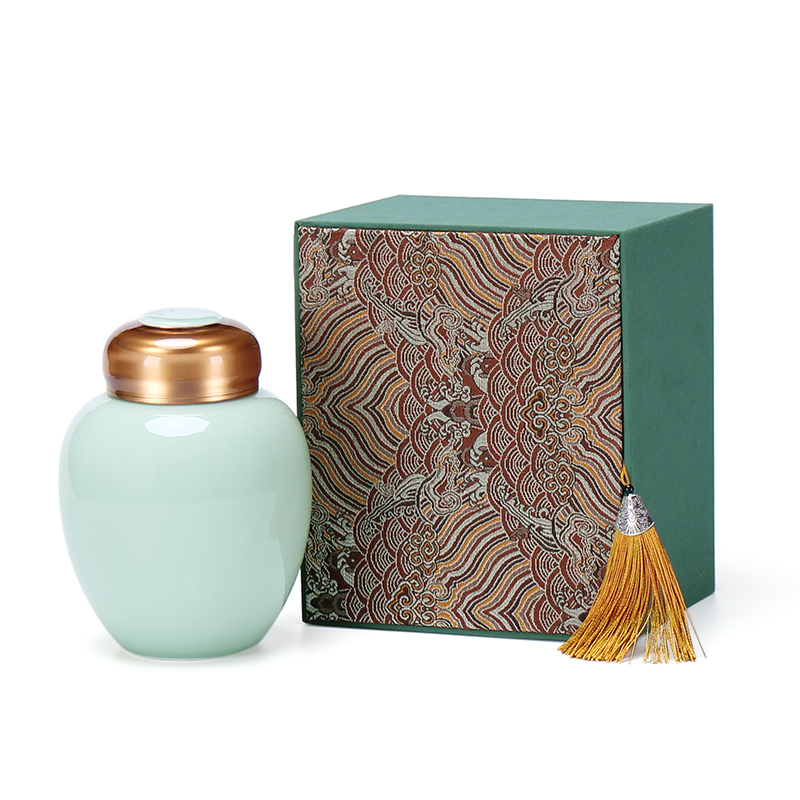 亚克力青瓷罐膏滋罐药粉药材螺纹罐密封瓶茶罐蜂蜜琺琅彩礼盒装