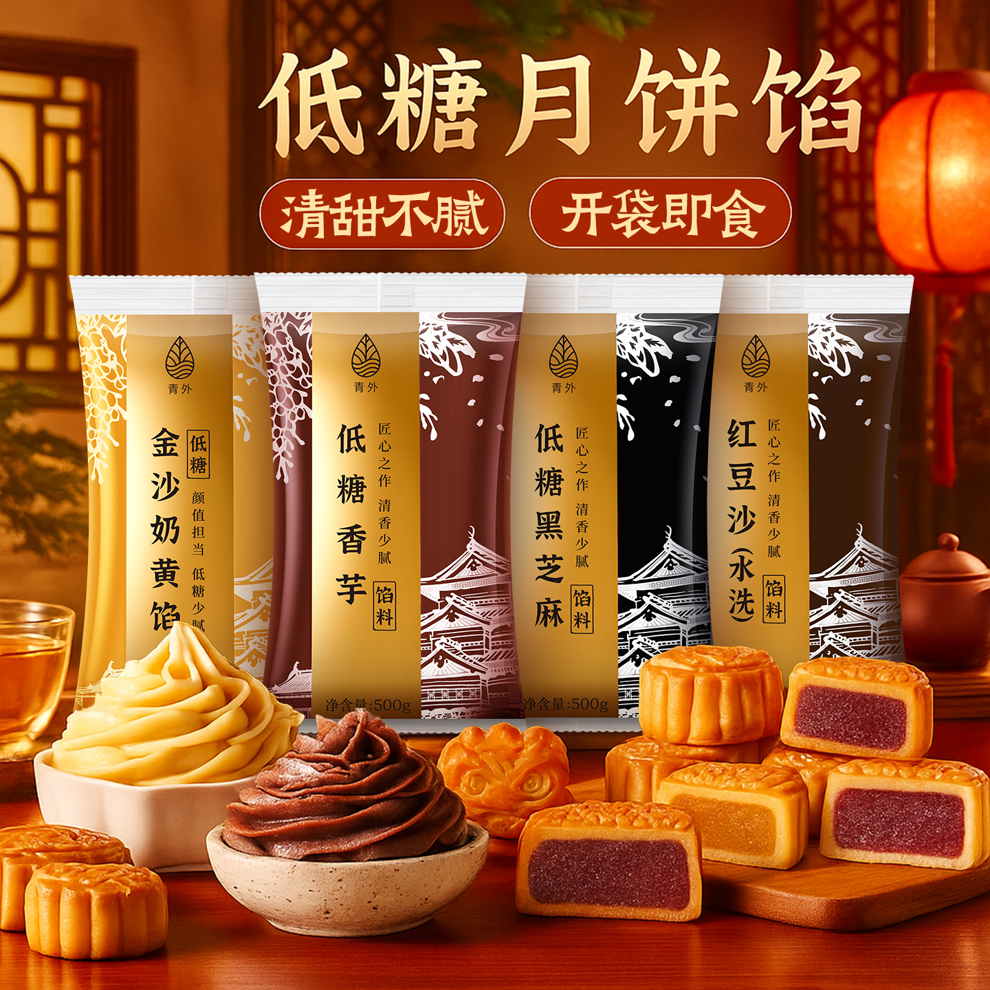 青外月饼馅料红豆沙馅凤梨五仁汤圆青团原材料白莲蓉椰蓉奶黄低糖