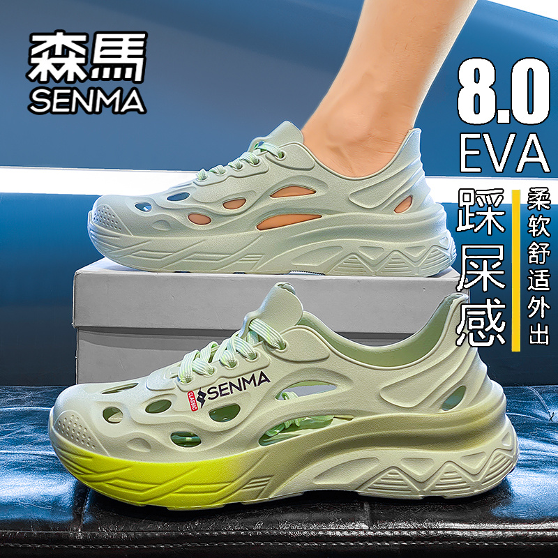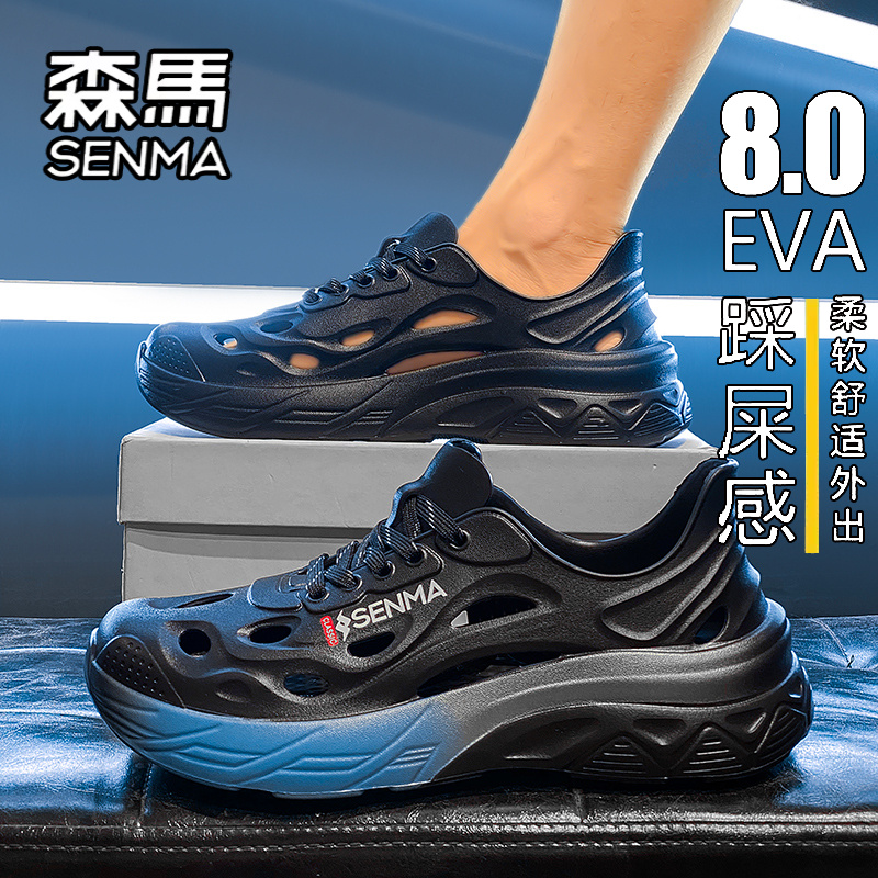 户外钓鱼涉水溯溪沙滩凉鞋 外穿防滑运动全包拖鞋 男夏季 森马洞洞鞋