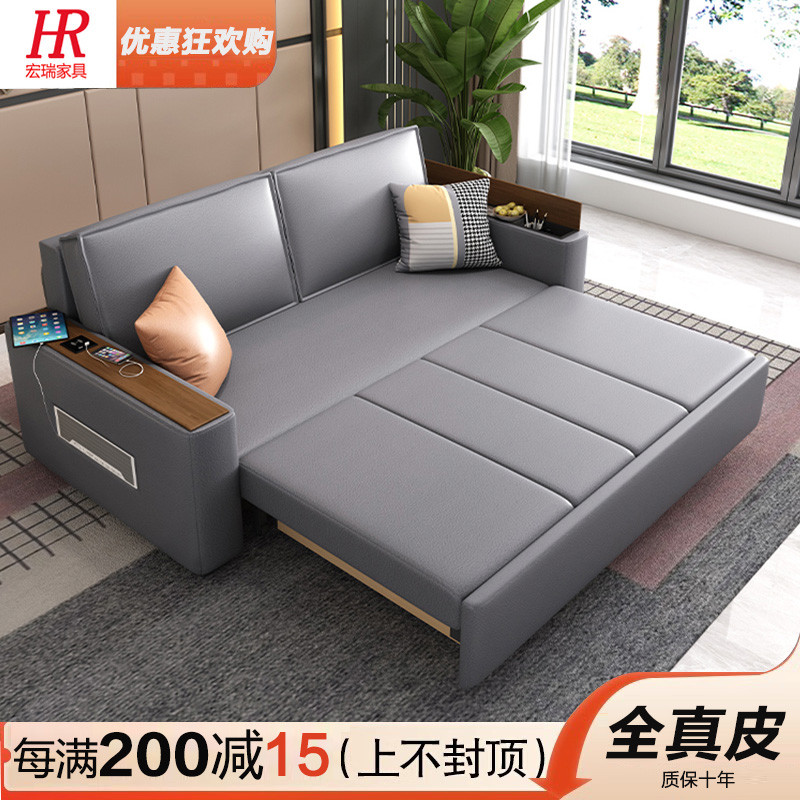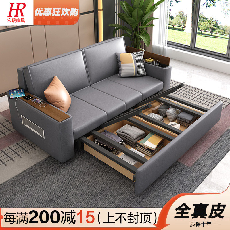 实木沙发床现代简约可折叠床储物伸缩北欧小户型客厅两用双人沙发