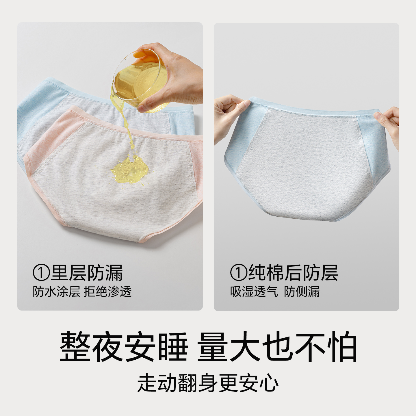 姨妈防漏三角内裤 月经期生理裤 女10A抑菌纯棉加长裆中腰无痕大码