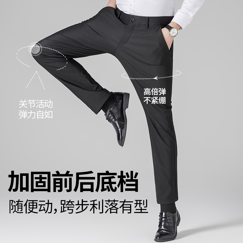 男秋冬季 长裤 薄款 深档爸爸宽松直筒四季 西裤 红豆中老年休闲商务裤