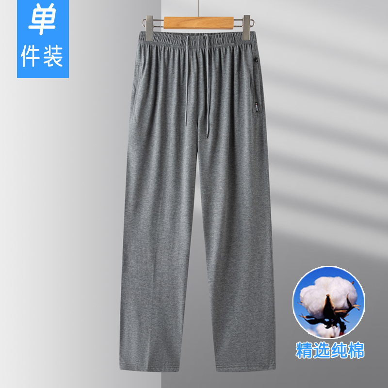 直筒爷爷爸爸装 薄款 宽松高腰外穿纯色松紧长裤 中老年男士 纯棉夏季