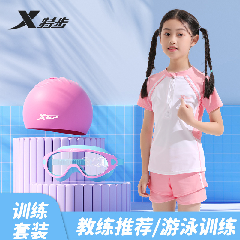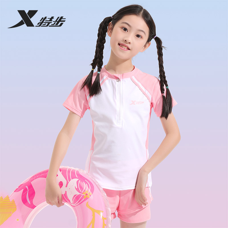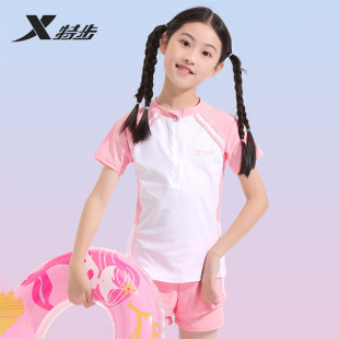 特步儿童泳衣女孩2025新款 中大童分体衣宝宝游泳衣夏女童速干防晒