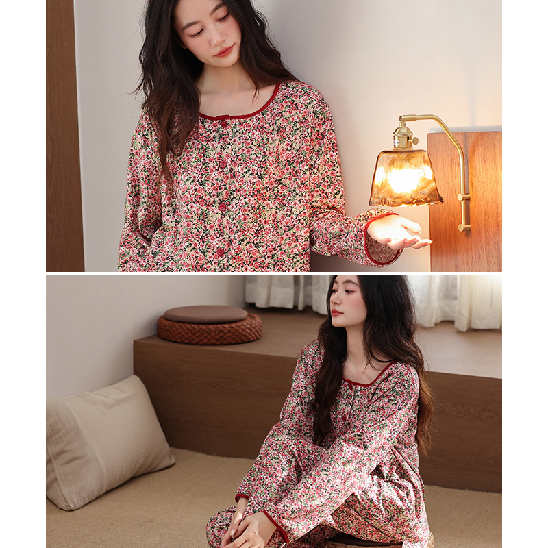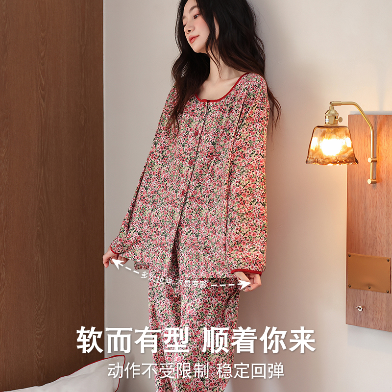 套装 2025新款 休闲田园碎花家居服全棉加大码 纯棉长袖 睡衣女春秋季