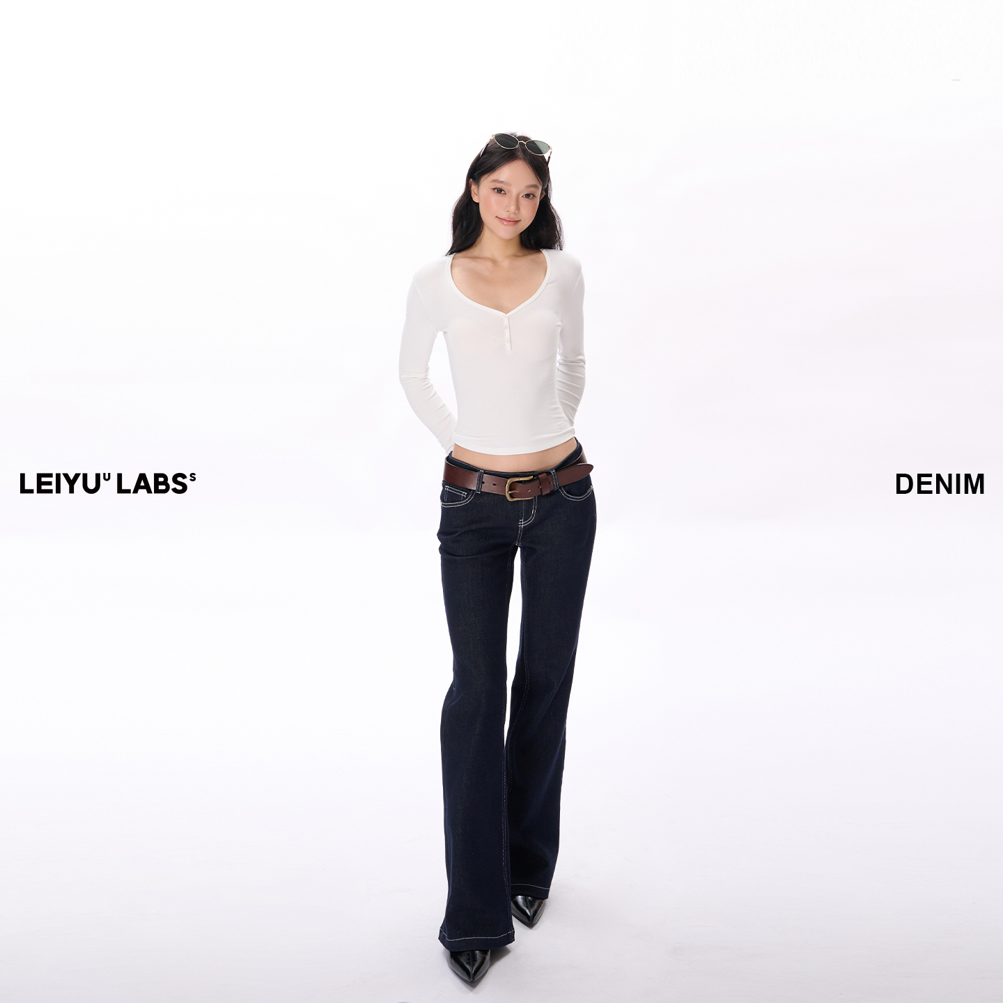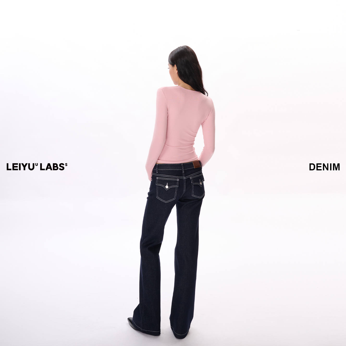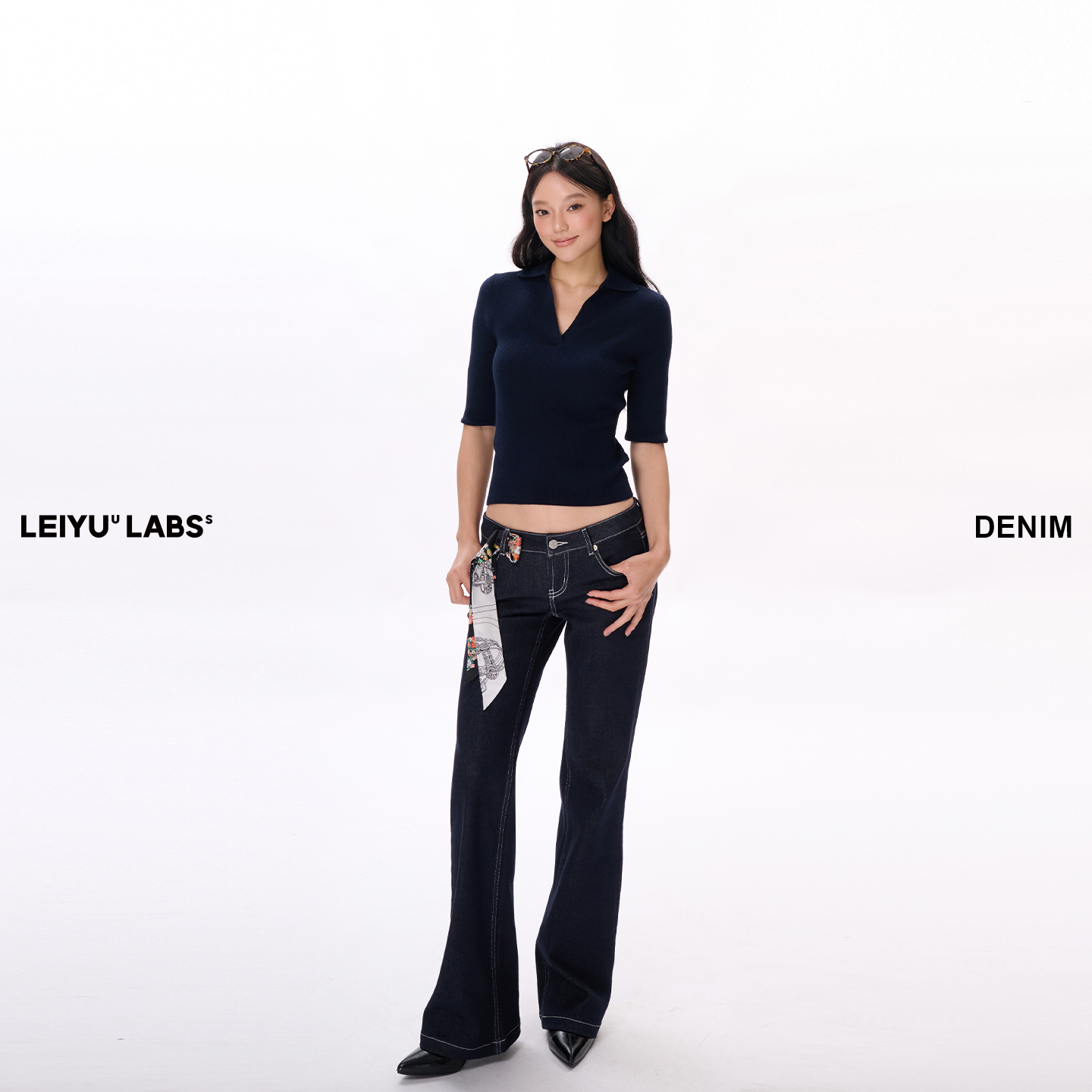 撞色复古阔腿长裤 女秋2025年新款 LABS低腰莱赛尔微喇牛仔裤 LEIYU