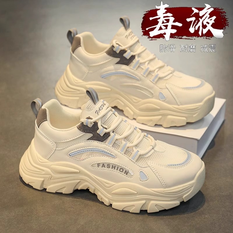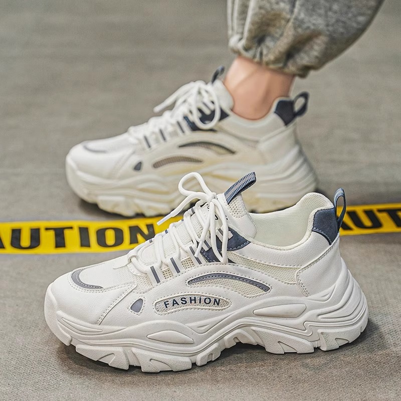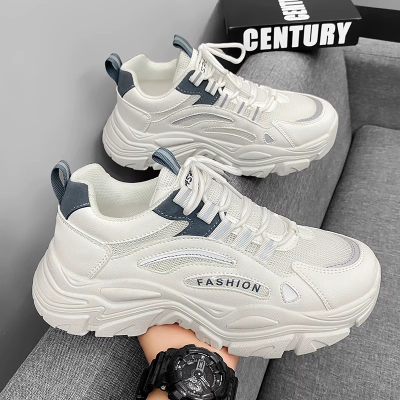 厚底增高白色老爹潮鞋 男鞋 网面透气青少年休闲运动鞋 夏季 2025新款
