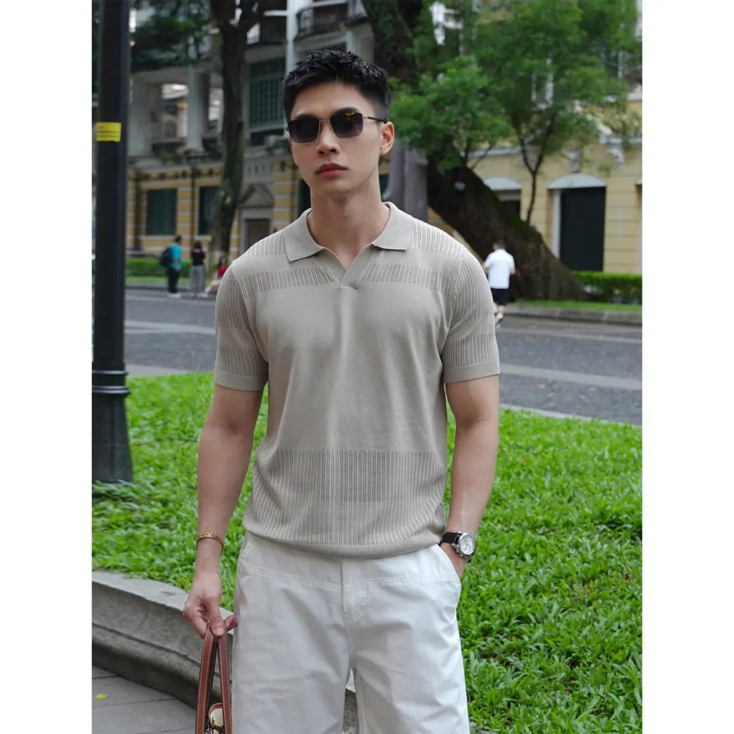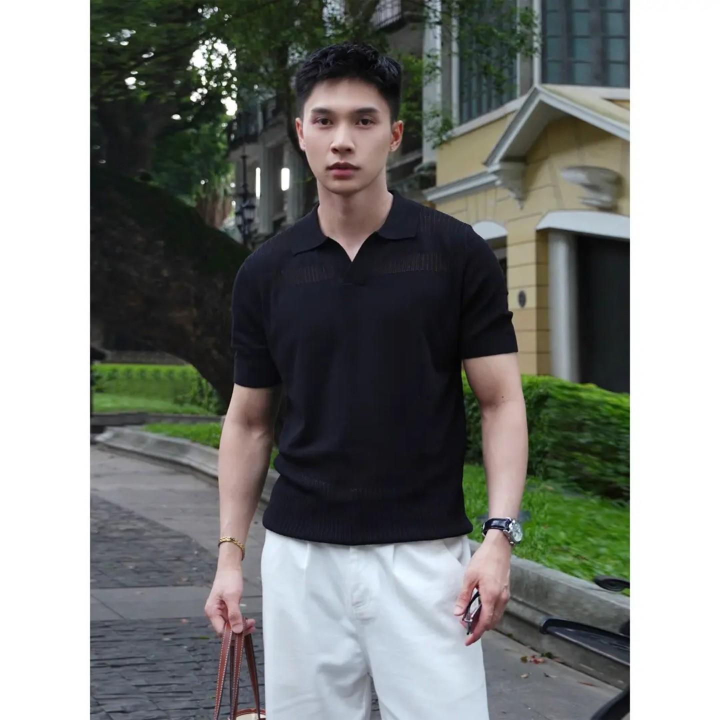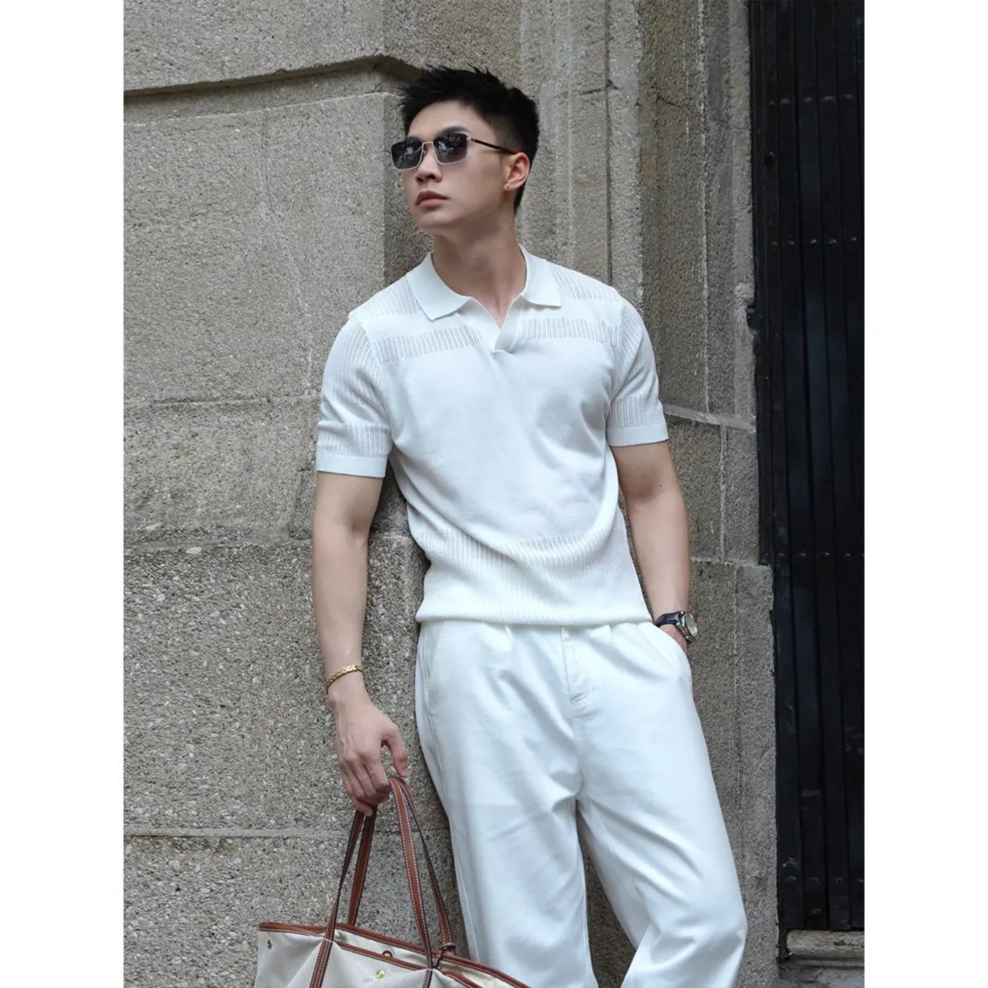 套装 轻熟雅痞风男装 搭配韩版 修身 老钱风软糯海鸥领polo衫 短裤 短袖