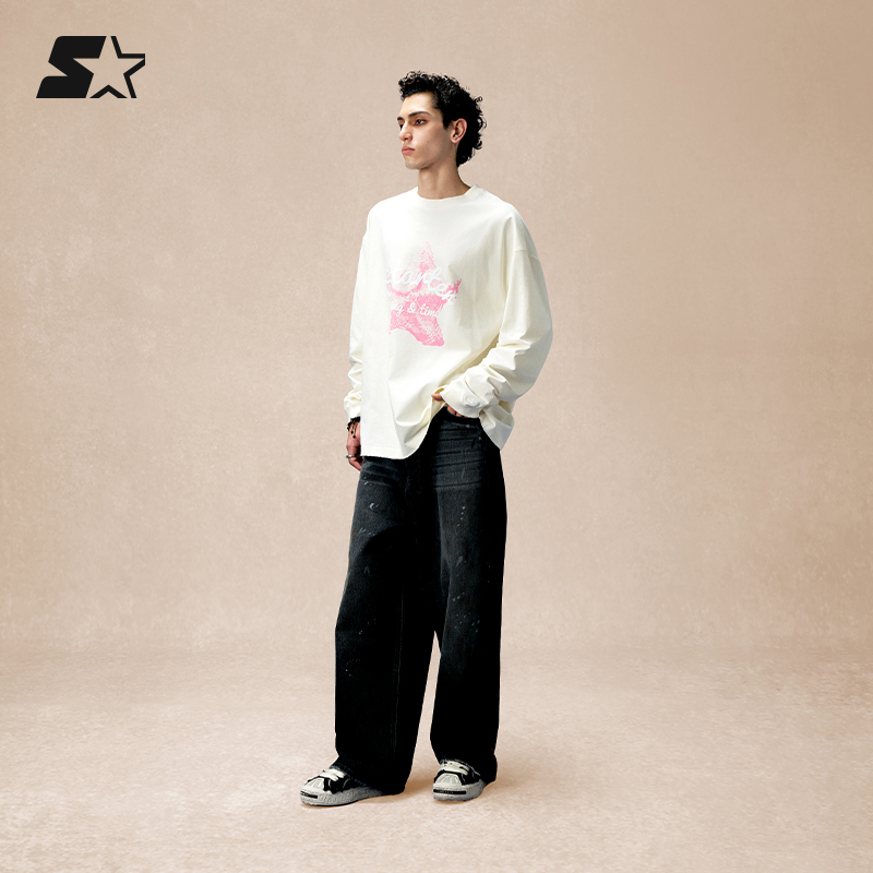 男女款 新款 纯棉休闲海星印花宽松上衣 T恤2025秋季 STARTER长袖