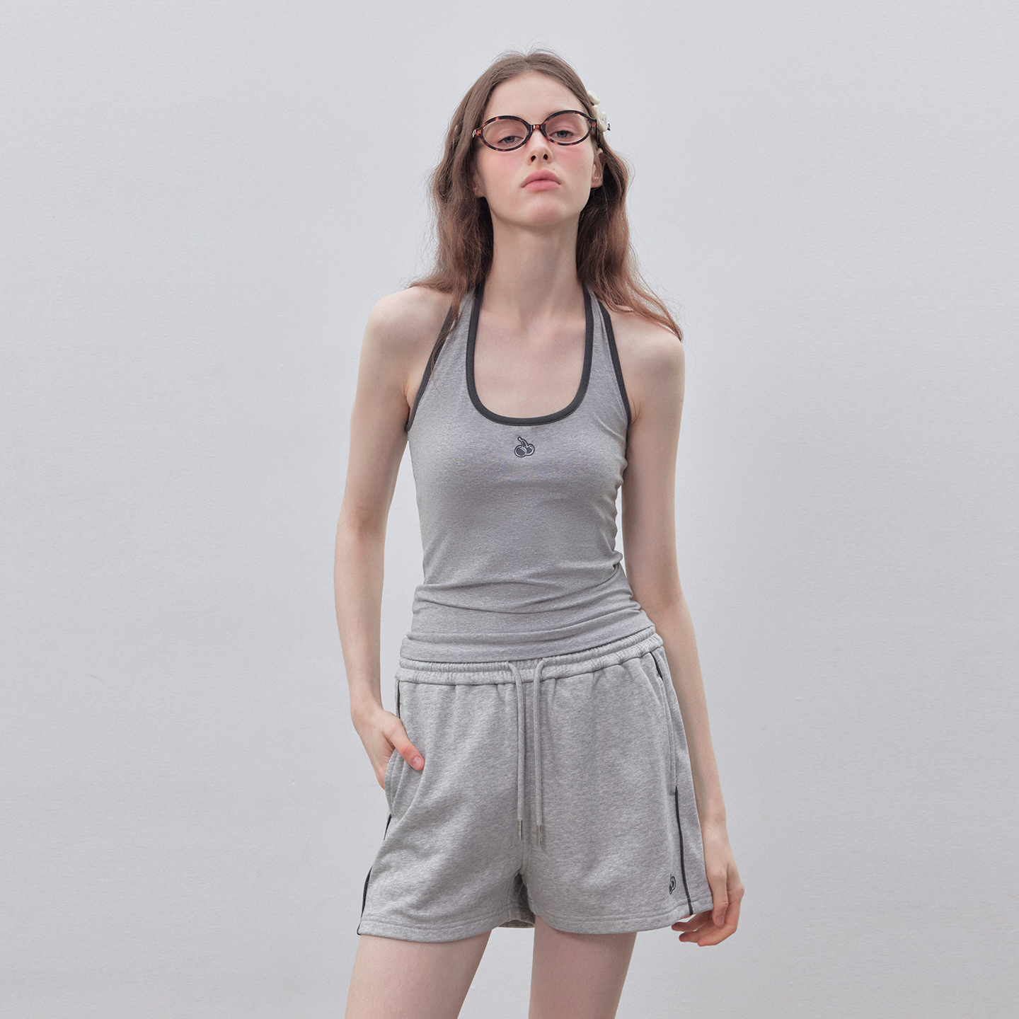 灰色吊带背心女夏季 防走光遮副乳打底内搭带胸垫外穿挂脖美背上衣