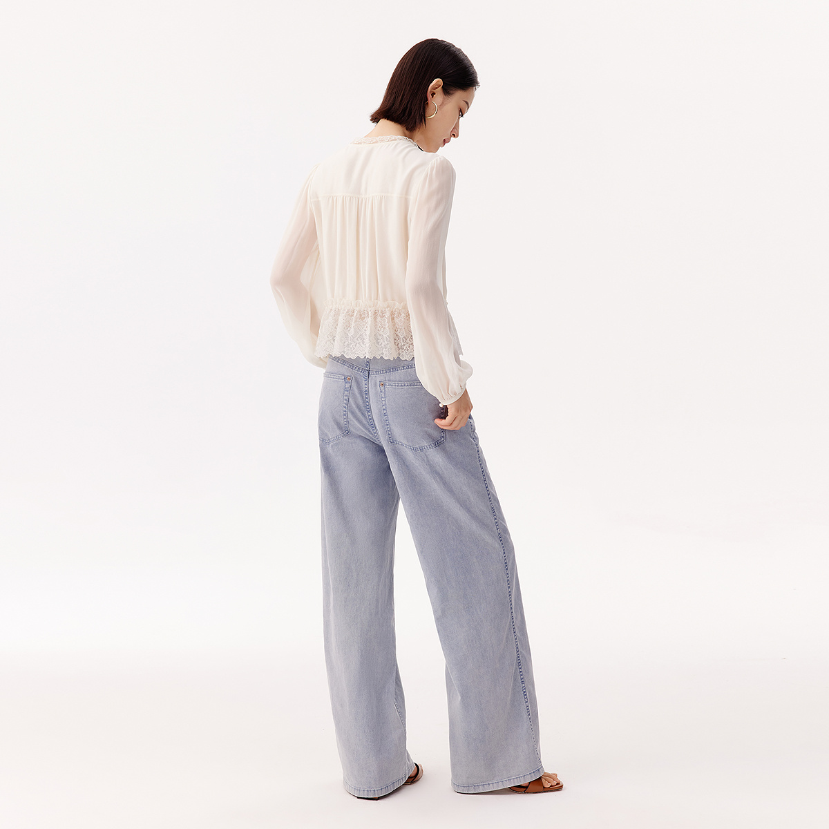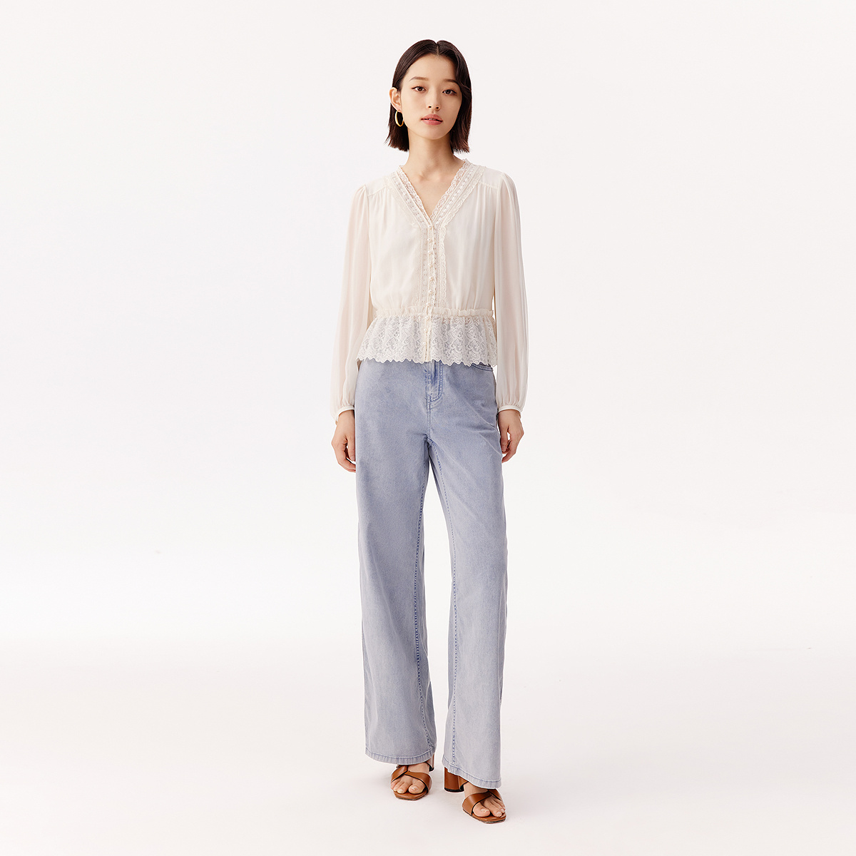 宽松减龄内搭叠穿衬衣小衫 2025秋季 女长袖 白色系带花边娃娃领衬衫