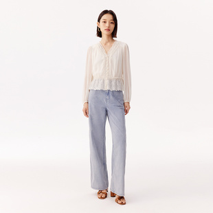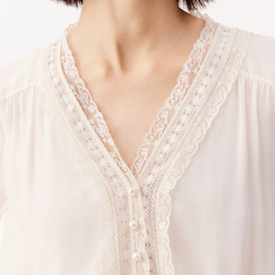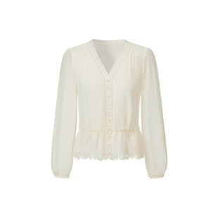 女2025秋季 衬衫 设计感气质通勤衬衣垂感职业上衣 V领白色长袖 法式