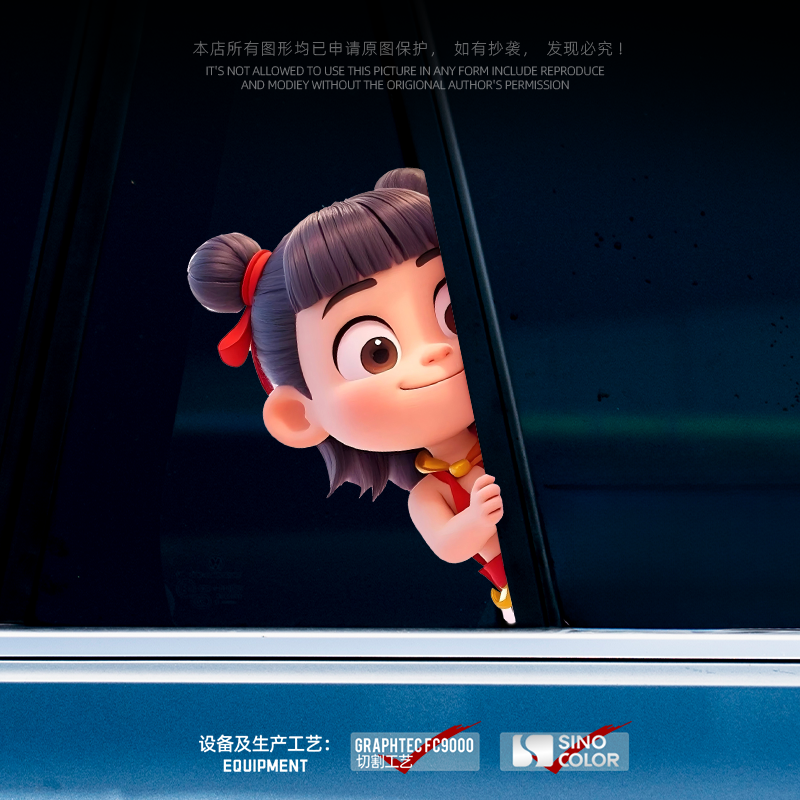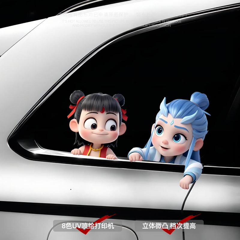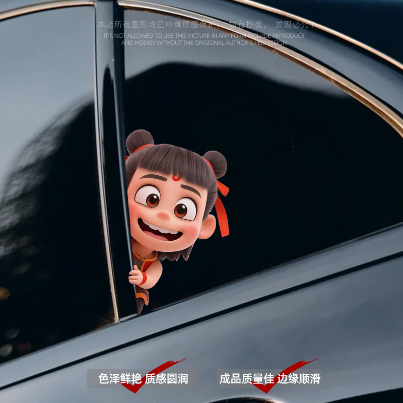 汽车贴纸哪吒敖丙卡通探头侧后窗玻璃车身划痕遮挡防水装 饰贴纸
