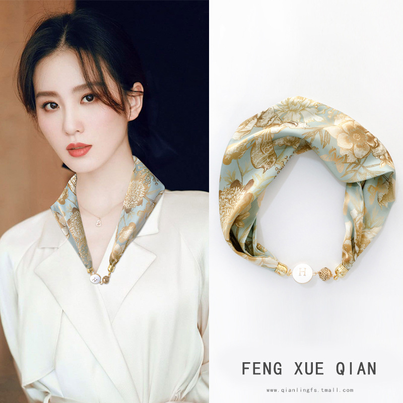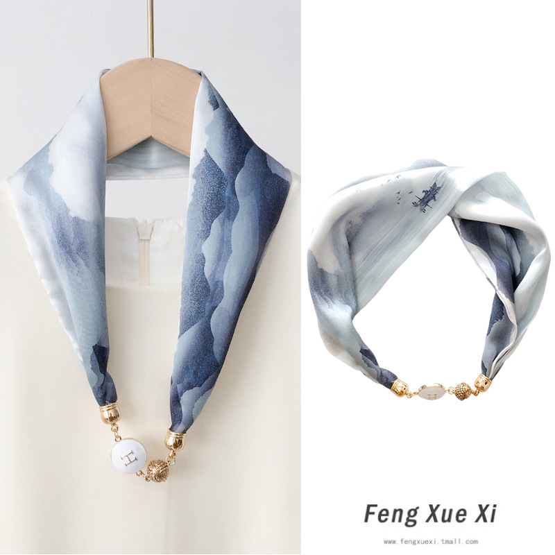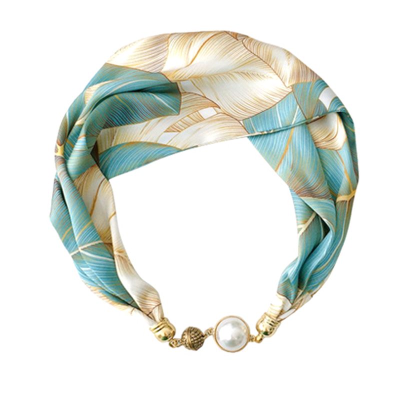 饰带窄项链珍珠 春秋磁吸扣围巾装 遮脖子薄款 护颈小长条丝巾女夏季