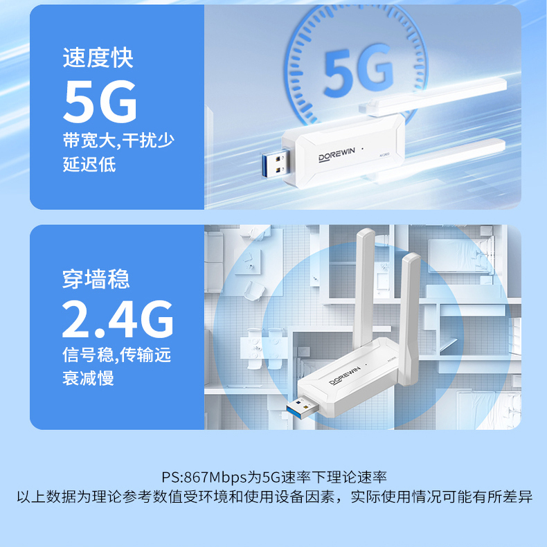 达而稳 机接收发射器1300M笔记本电脑主机上网连接热点外置网络5G双频信号免驱动 千兆无线网卡usb台式