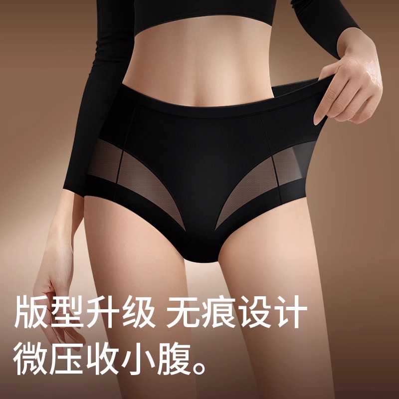 女 中高腰收腹丝滑纯棉无痕透气裆三角裤 3件 蕉内银皮510S女士内裤