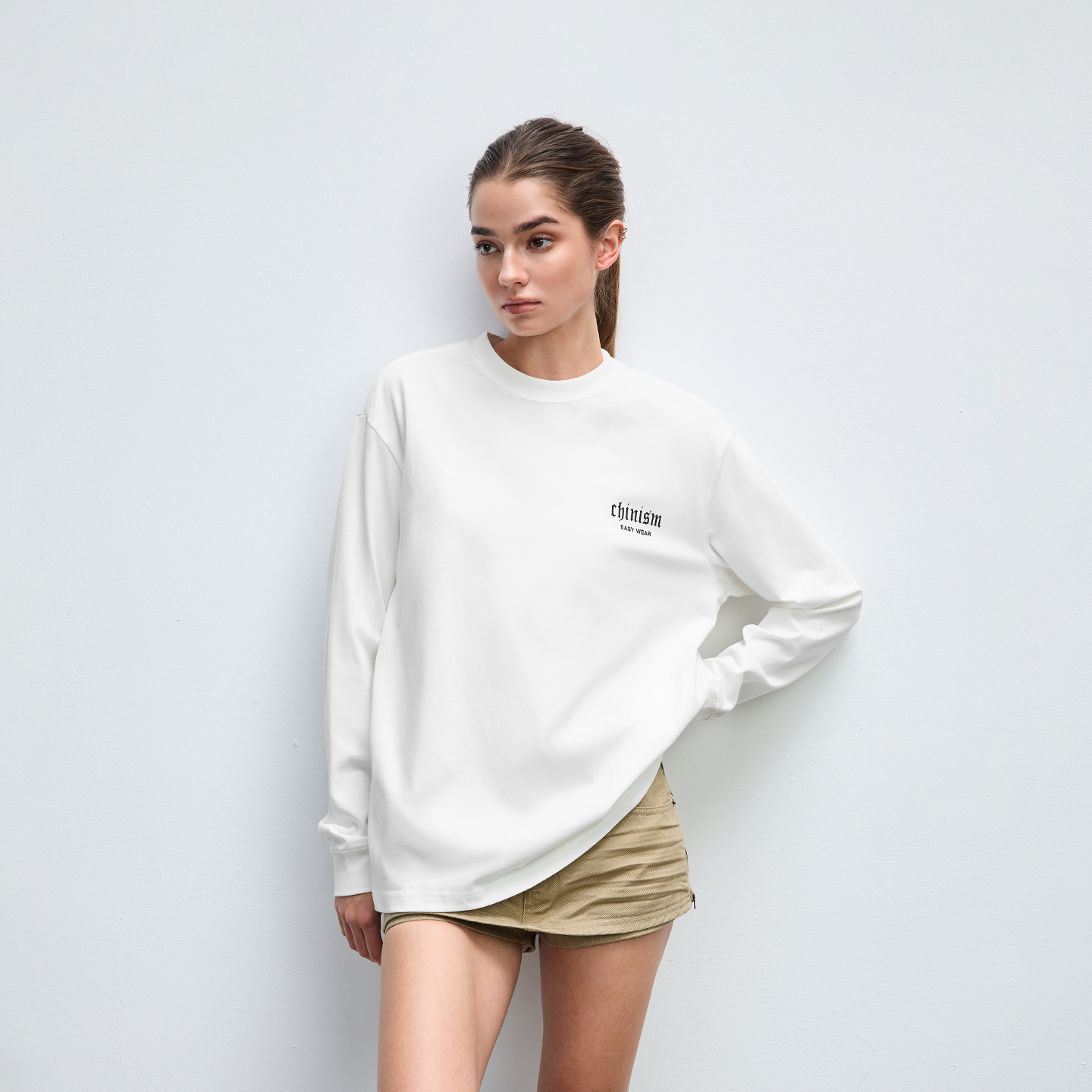 打底衫 修身 莱赛尔天丝T恤女亨利领长袖 紧身内搭上衣 Chapelle