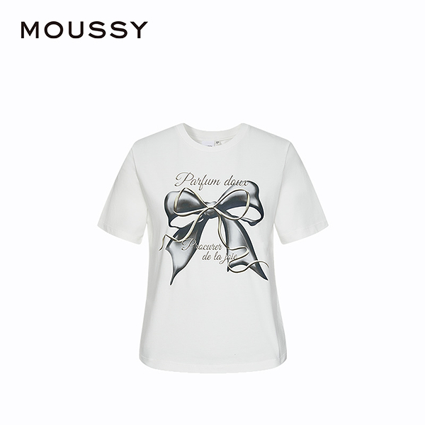 MOUSSY2025早秋休闲风大蝴蝶结印花圆领短袖 0731 T恤028IAA90