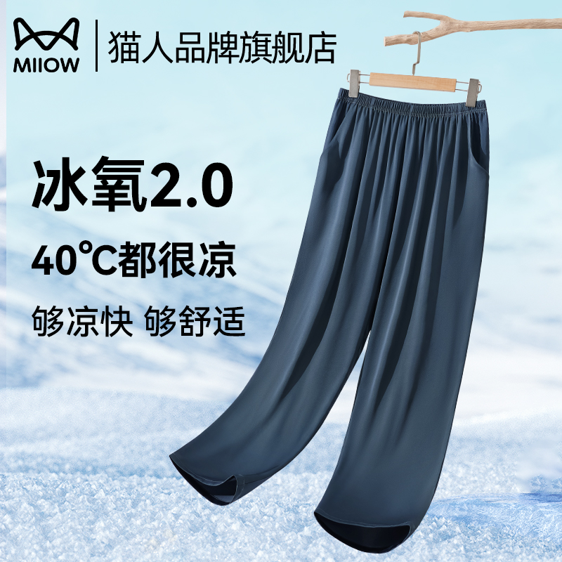 凉感长裤 睡裤 2025年新款 宽松大码 猫人冰雪丝男士 可外穿家居裤 夏季
