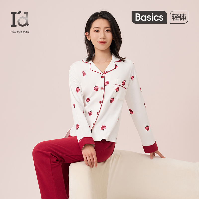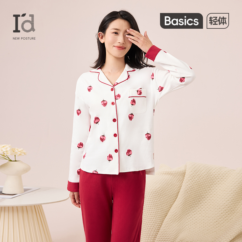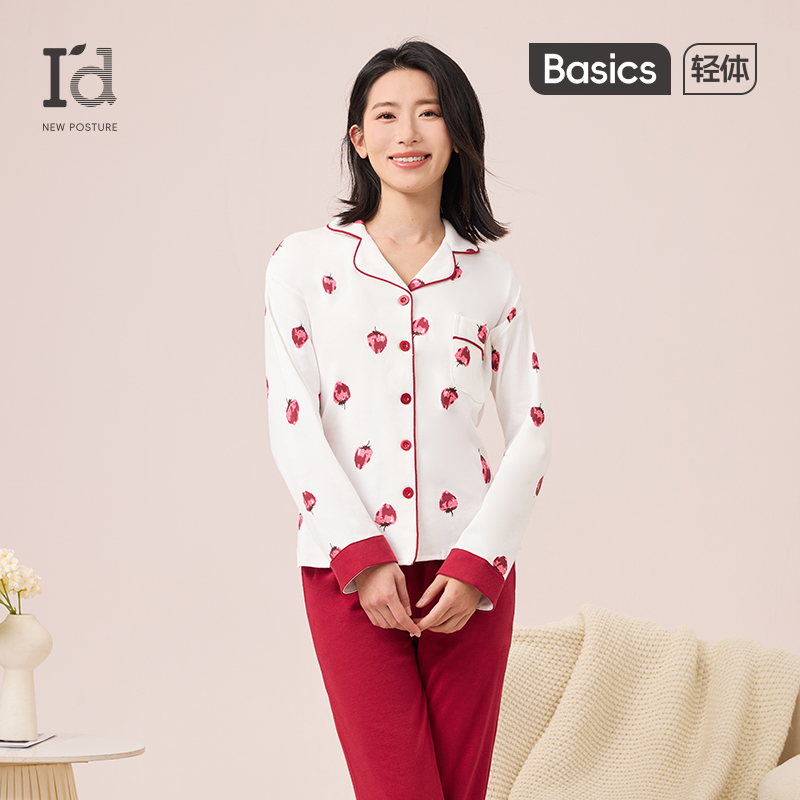 半边绒加绒加厚保暖珊瑚绒家居服草莓套装 家乐芬睡衣女秋冬款 冬季
