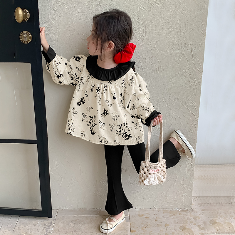 叠穿设计感显瘦收腰外穿上衣 女春夏新款 韩系长袖 翻领蕾丝白色衬衫
