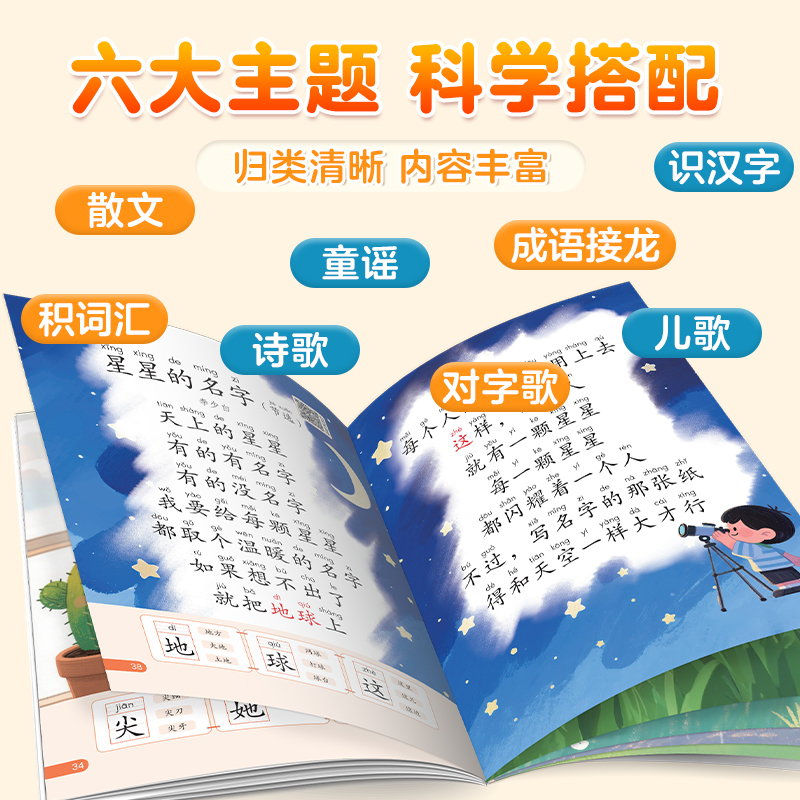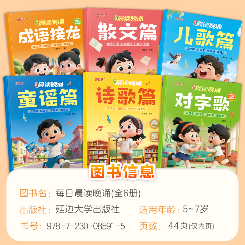 幼儿晨读晚诵幼儿园阅读绘本幼小衔接学前大班儿童课外书大字带拼音注音版 诗歌散文儿歌童谣对字歌有声读物一年级每日晨读阅读识字